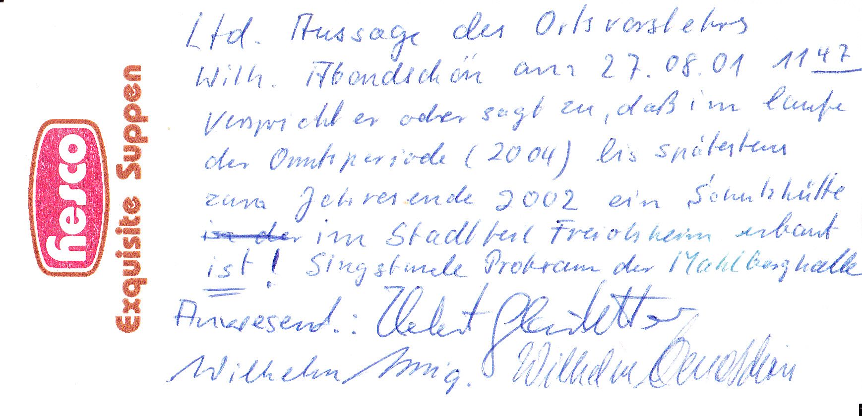 Beschluss eine Hütte am Heckenzipfel zu bauen